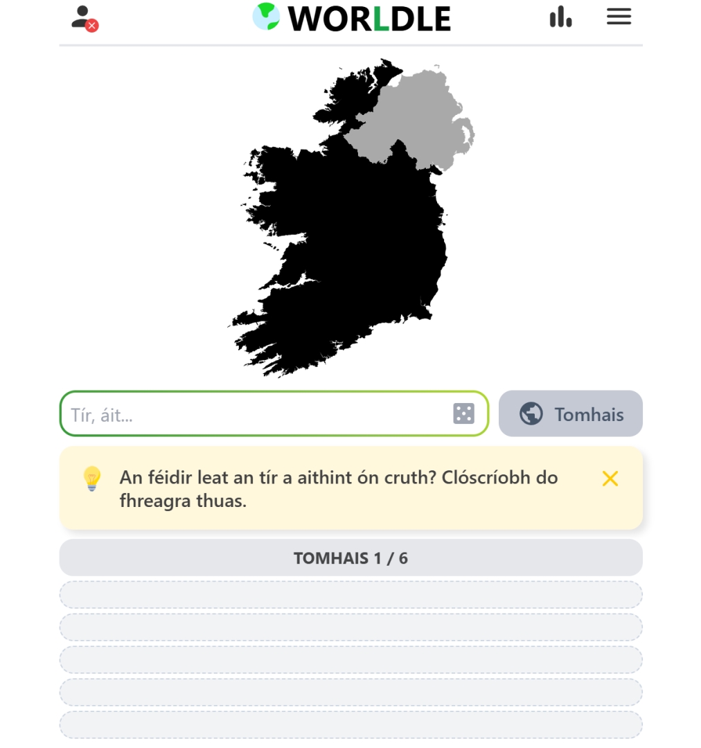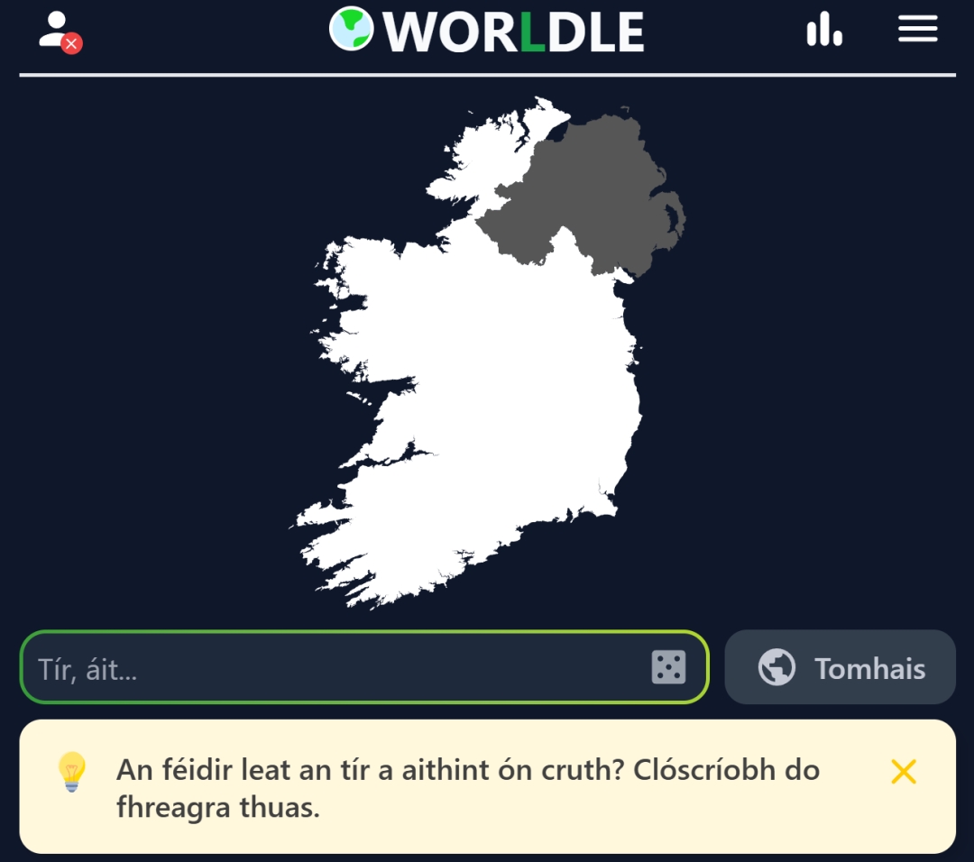 DUBLIN, Ireland - Oct 2, 2025 - Today at the NEXUS Irish Games Industry Conference, Games publisher Teuteuf Games announced a significant update for its viral geography game, Worldle: the addition of the Irish language (Gaeilge). The update, which goes live today, makes Irish the 12th language supported in the daily puzzle game that has captivated millions across the globe.