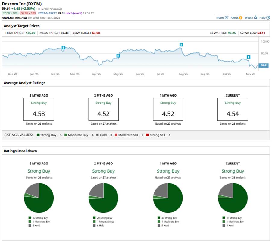 The mean price target of $87.38 represents a 46.7% potential upside from DXCM’s current price levels, while the Street-high price target of $125 suggests the stock rally as much as 109.7%.